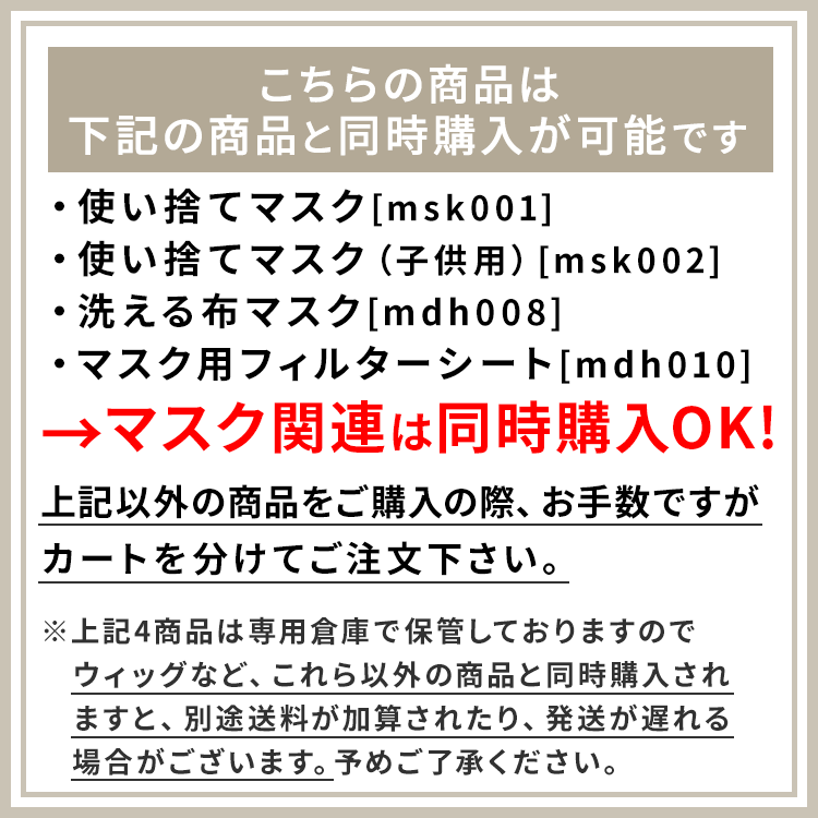 お手数ですが、その他の商品(ウィッグなど)はカートを分けてご注文ください。